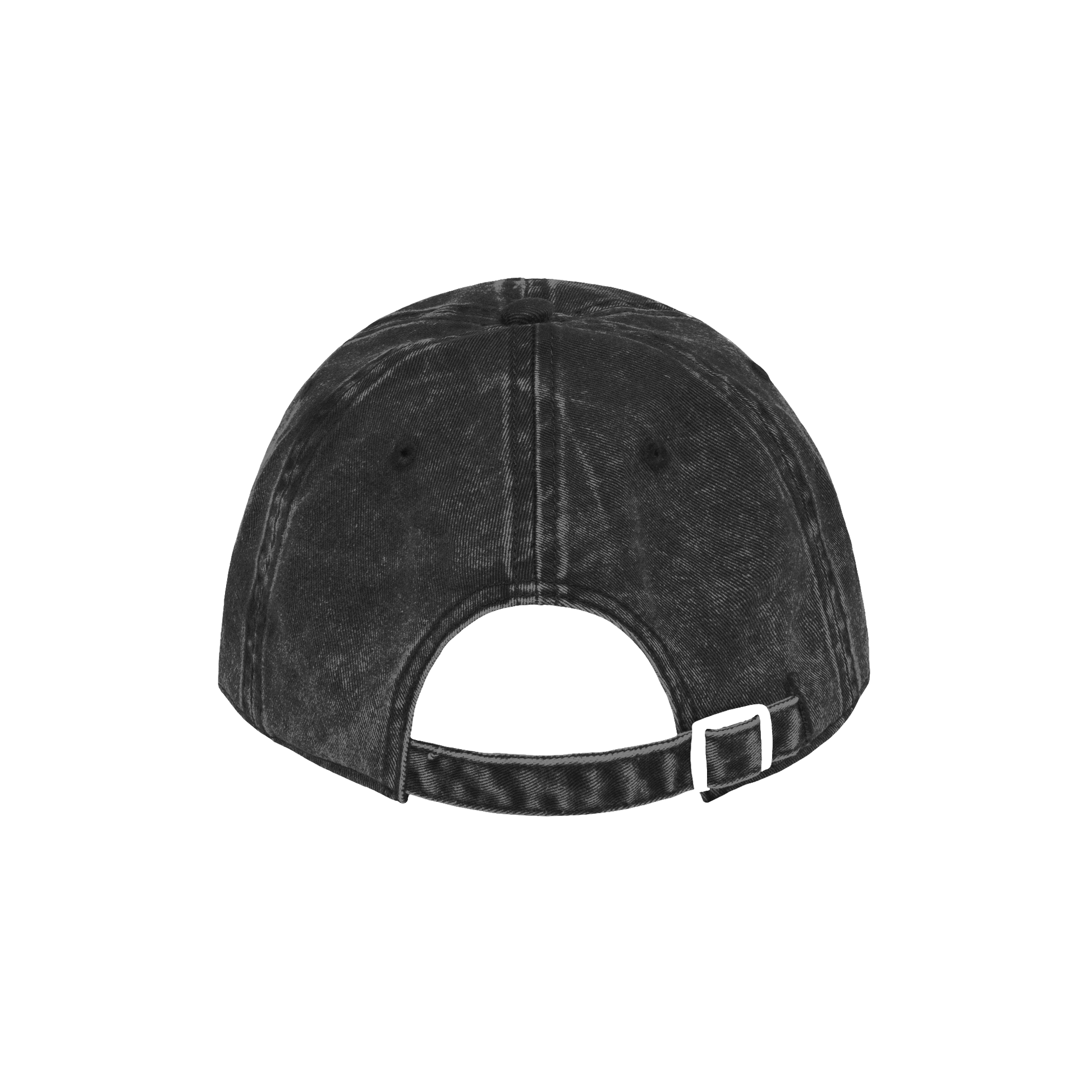 The low-profile, 6-panel cap features a soft, unstructured crown with a pre-curved visor and embroidered ventilation holes. The one-size-fits-all design is adjustable with a matching fabric strap and a brass-look buckle. A tear-off label is included.